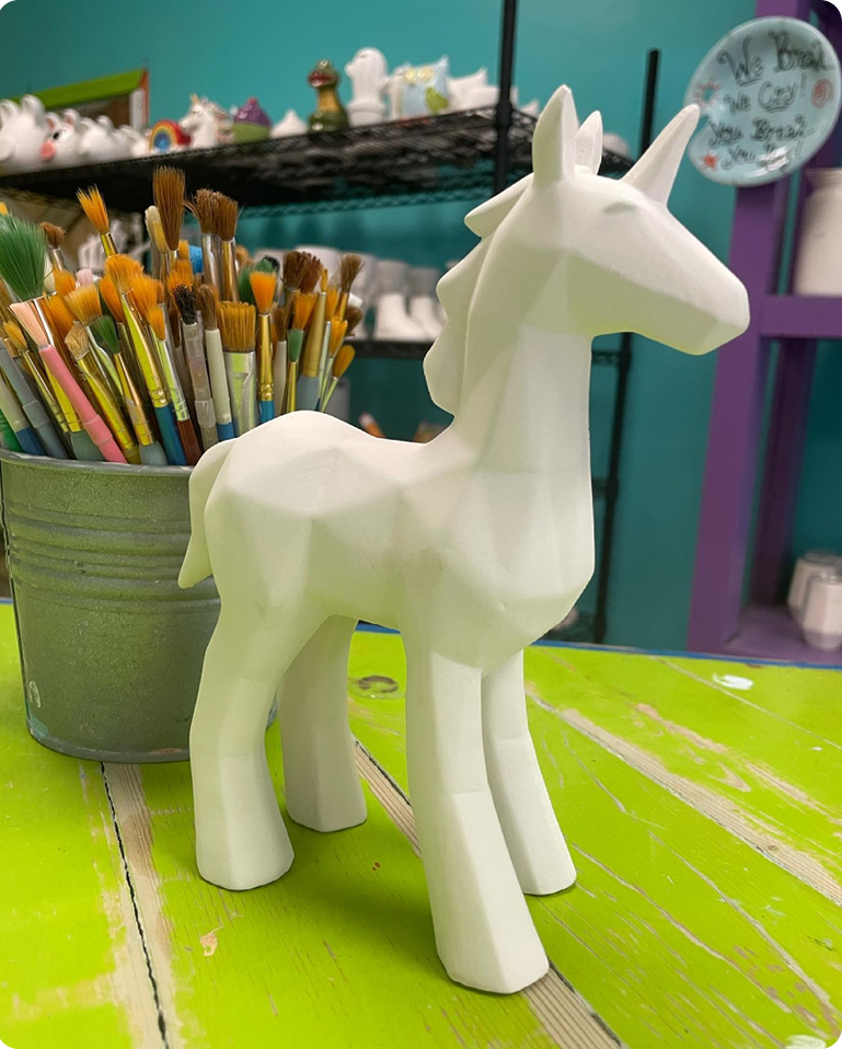 Simply pick out your piece, select your colors & start painting! Our prices are all inclusive, so you’ll only pay for your pottery plus sales tax. When you’ve finished & your piece is dry, it will be clear glazed & fired in our kiln. It will then ‘cook’ for 7 hours & reach over 1700 degrees! Once it’s done we’ll wrap & bag it, and give you a call to pick up! Our usual turnaround time is one week. You can paint with us anytime Wednesday thru Saturday 11-5 pm. No reservations needed!